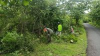 Babinsa Kerja Bakti Bersihkan Semak Belukar di Jalan Desa