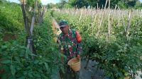 Babinsa Dasuk Serka Wahyono Bantu Warga Panen Tomat di Desa Binaan