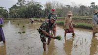 Percepat Ketahanan Pangan, Babinsa Koramil 14/Batang-Batang Turun Ke Sawah Bantu Petani Tanam Padi