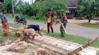 Babinsa Koramil 18/Kangean Serda Sutrisno Bantu Warga Cor Jembatan di Desa Angkatan
