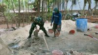 Babinsa Bantu Aduk Campuran untuk Pembangunan Rumah Warga