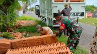 Babinsa Koramil 0827/20 Sapudi Bantu Warga Angkat Genting dan Pasang Atap Rumah di Desa Rongsong