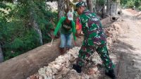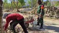 Ikhlas Penuh Semangat, Babinsa Gotong Royong Turunkan Batu Bersama Warga