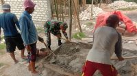 Babinsa Desa Pancor Bersama Warga Kerja Bakti Pengecoran Drainase Di Jalan Desa