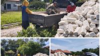 Bersama Warga Babinsa Koramil 21/Ra’as Kerja Bakti Cor Jalan Berlubang