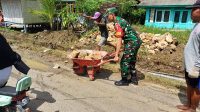 Angkat Campuran Semen Dan Pasir, Babinsa Bantu Warganya