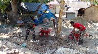 Bantu Warganya, Babinsa Gotong Royong Bangun Rumah