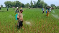 Babinsa dan Dinas Pertanian Bantu Poktan Semprot Pestisida Tanaman Padi