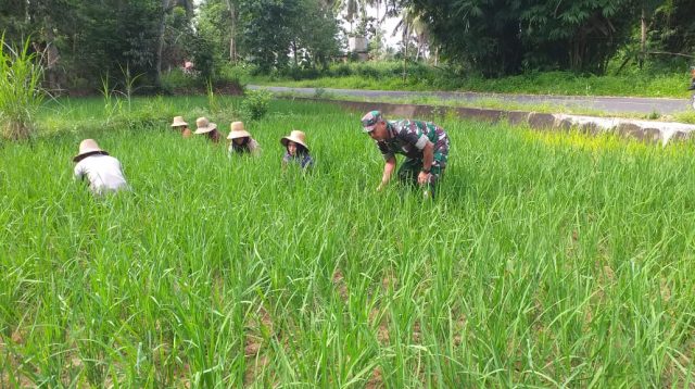 Begini Aktivitas Babinsa di Sawah Saat Menyiangi Gulma