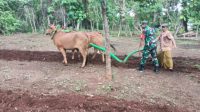 Babinsa Koramil 0827/23 Giligenting dan Petani Bajak Sawah Tradisional dengan Sapi
