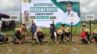Dandim Sumenep Bersama Bupati Lakukan Gerakan Tanam Padi Masa Tanam Kedua