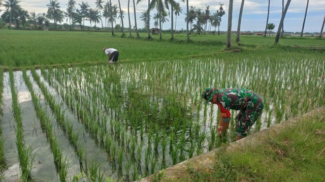 Turun Ke Sawah, Babinsa Bantu Petani Cabut Gulma Padi