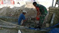 Wujud Kepedulian, Babinsa Bantu Warga Aduk Campuran Semen