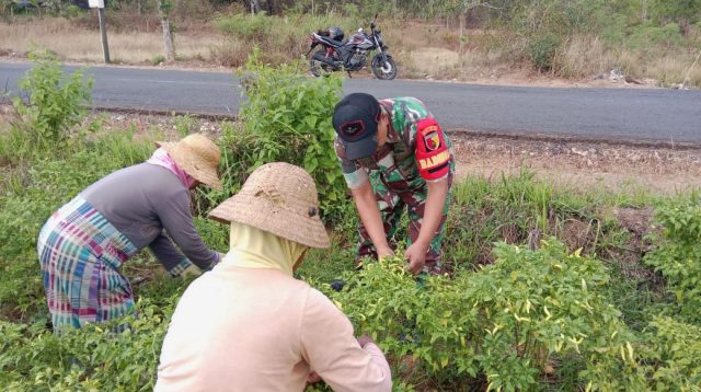 Babinsa Rubaru Bantu Petani Panen Tanaman Cabe