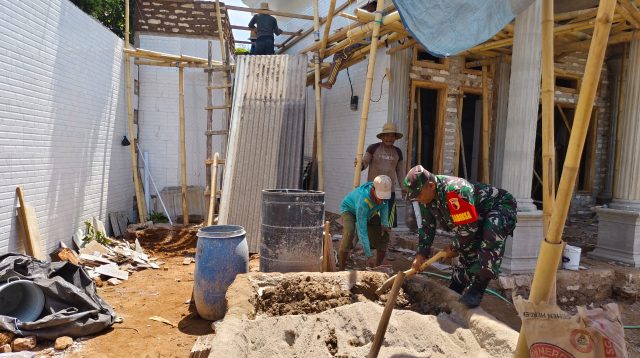 Bantu Renovasi Rumah di Dungkek, Babinsa : Kita Lestarikan Budaya Gotong Royong