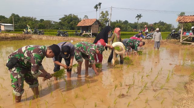 Dukung LTT, Babinsa Bersama BPP Gapura Turun ke Sawah Tanam Padi Bersama