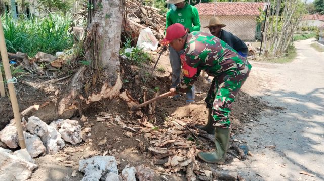 Membahayakan Pengguna Jalan Desa, Babinsa Koramil 20/Sapudi Bantu Warga Tebang Pohon