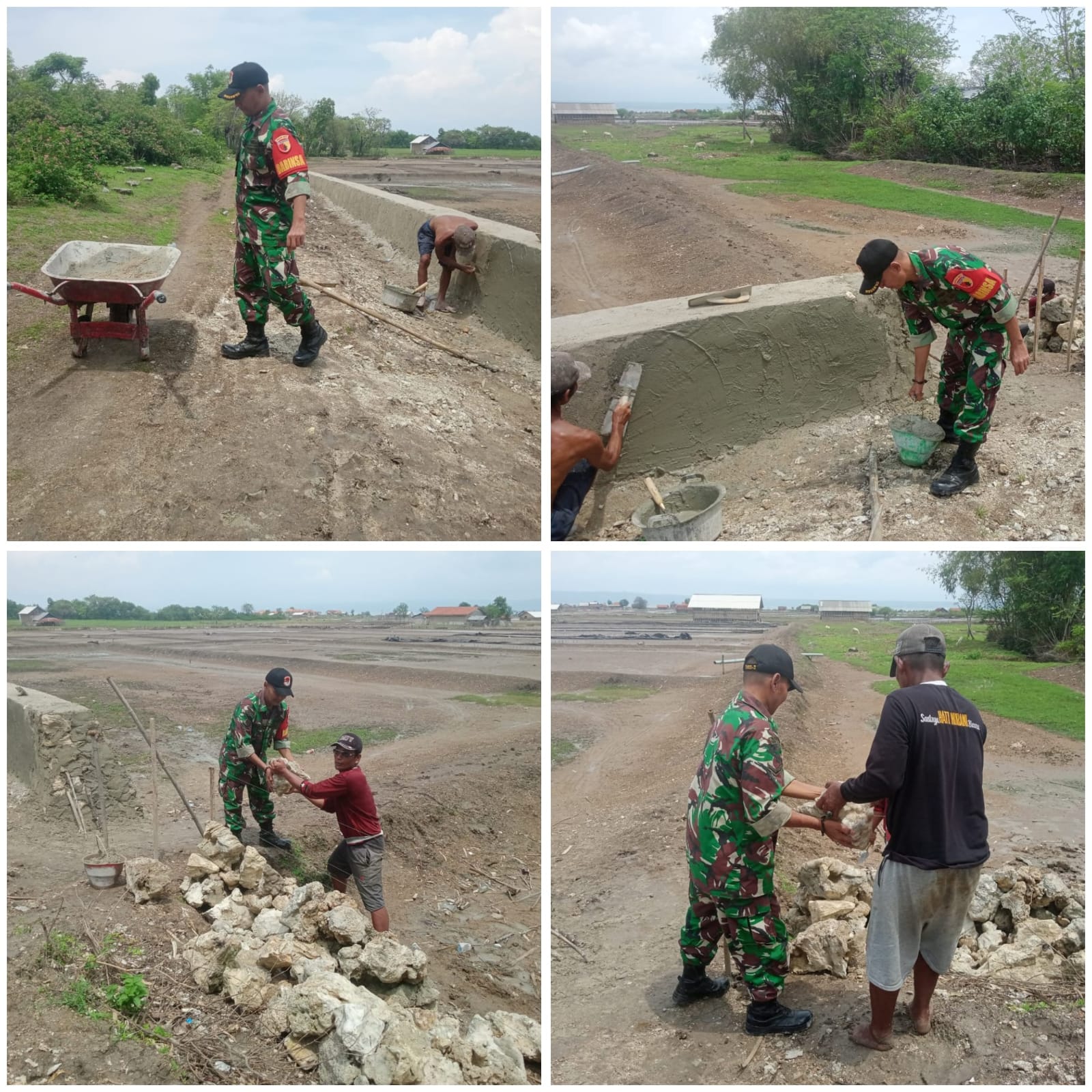 SUMENEP – Babinsa Koramil 23/Giligenting, Serda Herson, mengajak warga Desa Lombang, Kecamatan Giligenting, Kabupaten Sumenep, untuk bergotong royong membuat pembatas jalan sebagai upaya meningkatkan keselamatan dan kenyamanan pengguna jalan di wilayah tersebut.