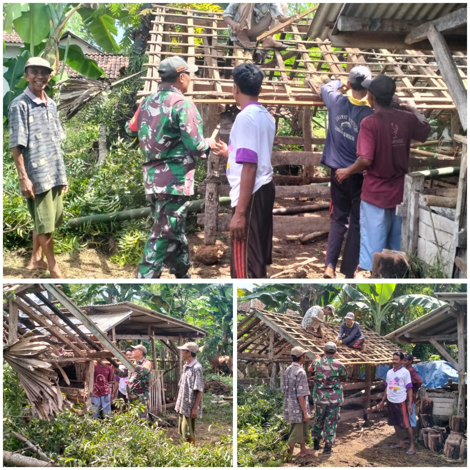 SUMENEP – Guna meningkatkan kesejahteraan dan meringankan beban warga desa binaan, Babinsa Koramil 14/Batang Batang Serma Tarom membantu pembuatan kandang kambing milik warga di Desa Nyabakan Barat, Kecamatan Batang Batang, Kabupaten Sumenep, Sabtu (27/12/2025).