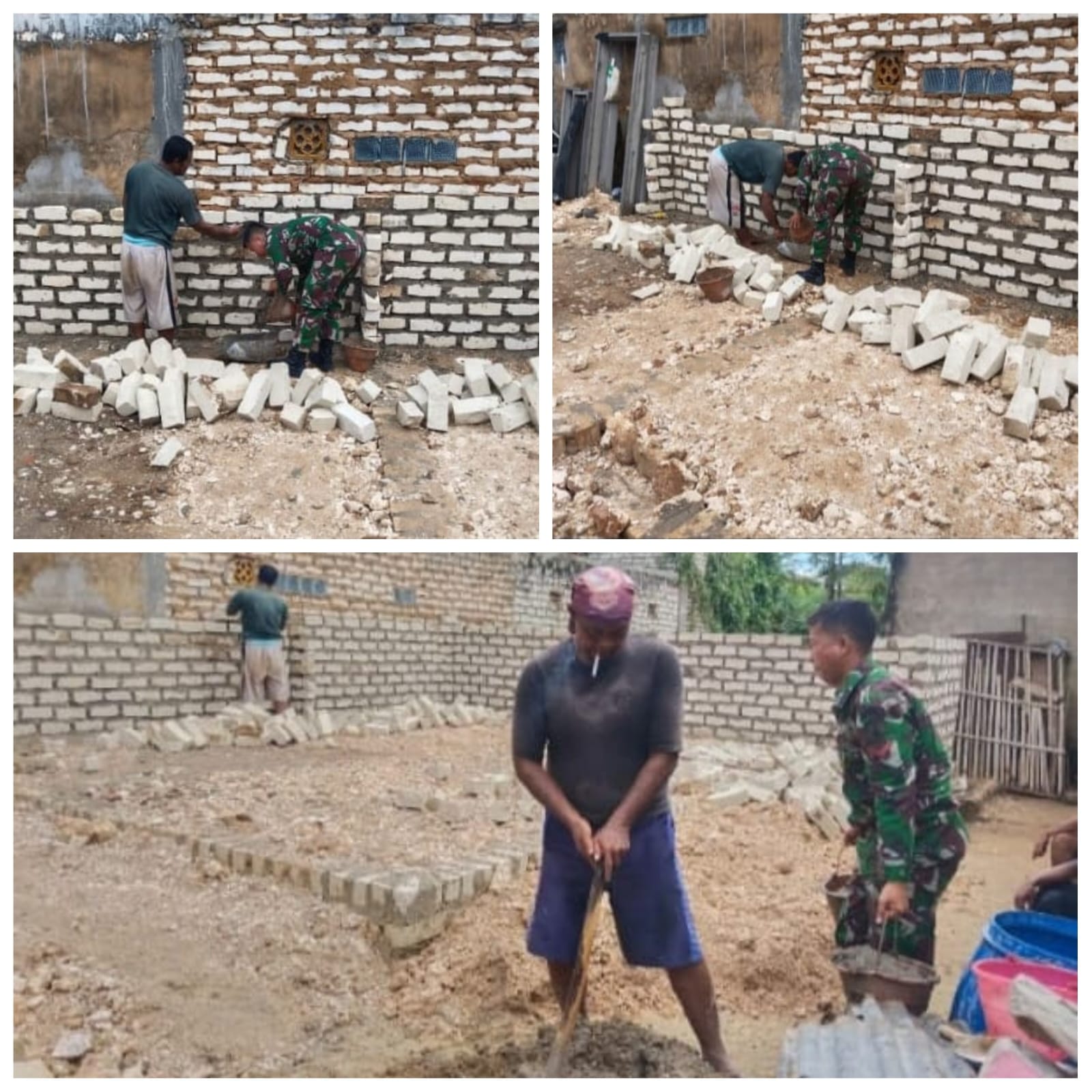 SUMENEP – Anggota Koramil 0827/11 Pasongsongan, Kopda Domairi Efendi, melaksanakan karya bakti membantu pembangunan rumah milik warga di Dusun Pakotan, Desa Pasongsongan, Kecamatan Pasongsongan, Kabupaten Sumenep. Kamis (4/12/2025).
