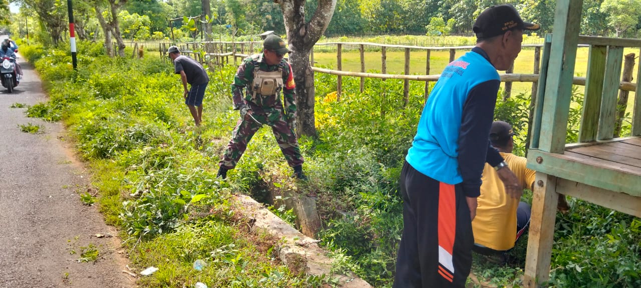 SUMENEP – Babinsa Koramil 0827/18 Kangean Serda I ketut bersama masyarakat melaksanakan gotong royong membersihkan selokan/parit bersama warga Desa Kangean Kecamatan Kangean Kabupaten Sumenep. Kegiatan ini untuk mewujudkan hidup sehat, dan mengeratkan hubungan yang baik dengan warga binaan. Senin (14/04/2025).